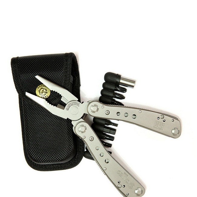 Kvalitní multifunkční nůž, kleště, šroubovák, nůžky, pilka, otvírák, atd. z nerezové oceli s pouzdrem a bity - 25 funkcí
