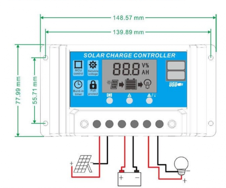 Solární regulátor 12-24V / 30 A - maximální nabíjecí i zátěžový proud 30 A